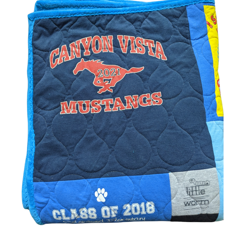 Allow 4-6 Weeks for careful custom crafting. Your $50 deposit holds your place on the waiting list and will go toward the total cost of the quilt. We do not offer shipping on t-shirt quilts. Free delivery is available within 10 miles of Sew My Goodness.